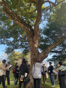 写真4:屋外で樹木を観察している様子