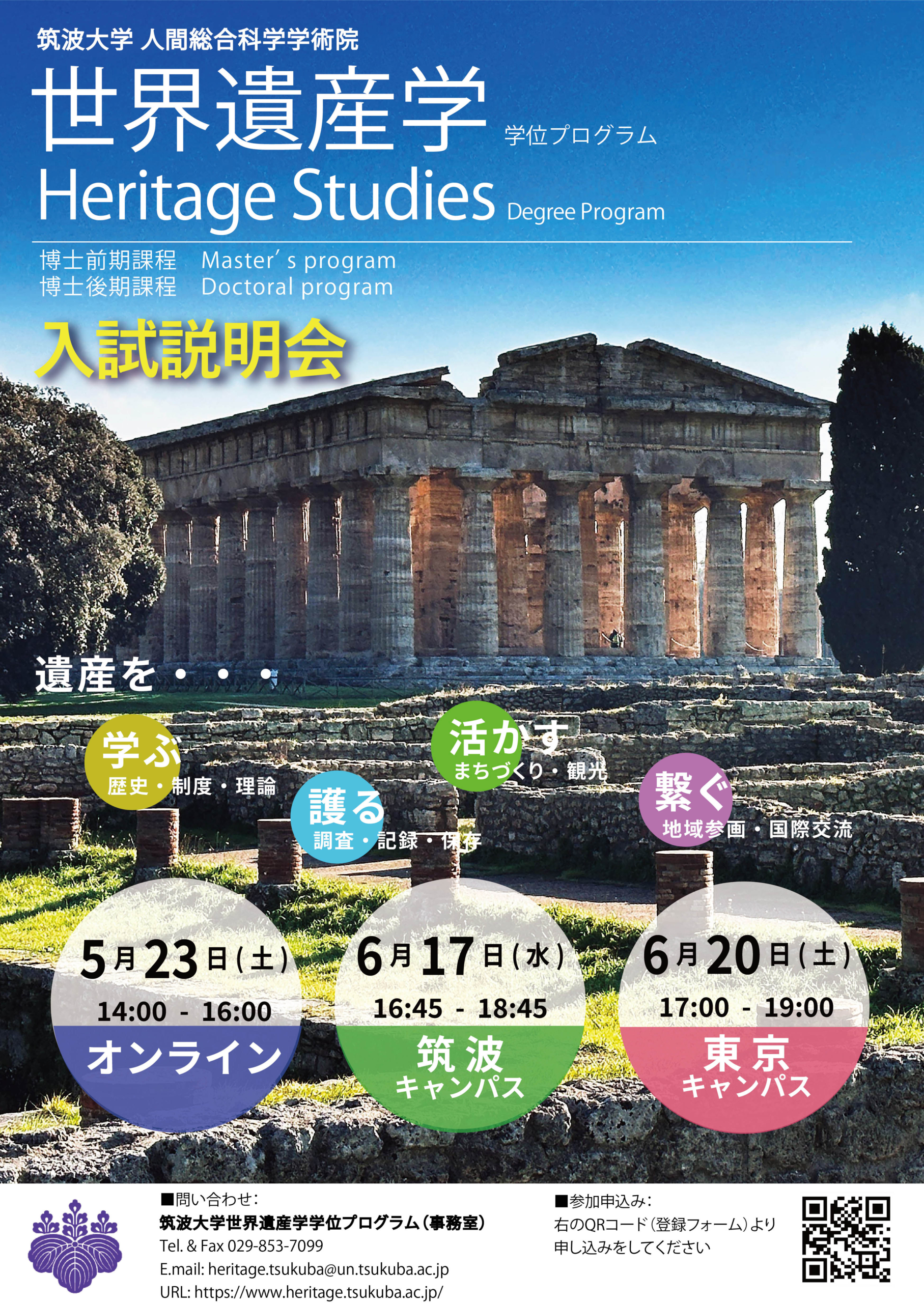 ◆世界遺産学学位プログラムの入試説明会(2027年度入学)を以下の日程で開催いたします。